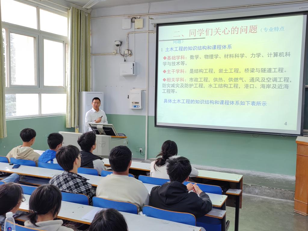 2023年10月19日上午,土木工程系在教二—T5教室开展了2023级土木工程专业新生入学教育活动,太阳成集团tyc151cc党委副书记冀鹏、土木工程系系主任高春华、教师代表王述超及2023级土木工程专业全体新生参加了本次活动,活动由高春华主持。