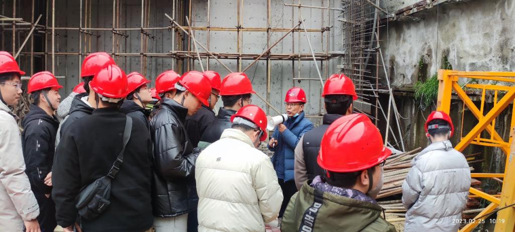 2023年2月25日,我院土木工程专业(城市地下空间工程方向)大四学生在土木工程系王述超、刘洋老师的带领下前往光山县金凯帝城市广场施工工地开展基坑工程毕业实习。