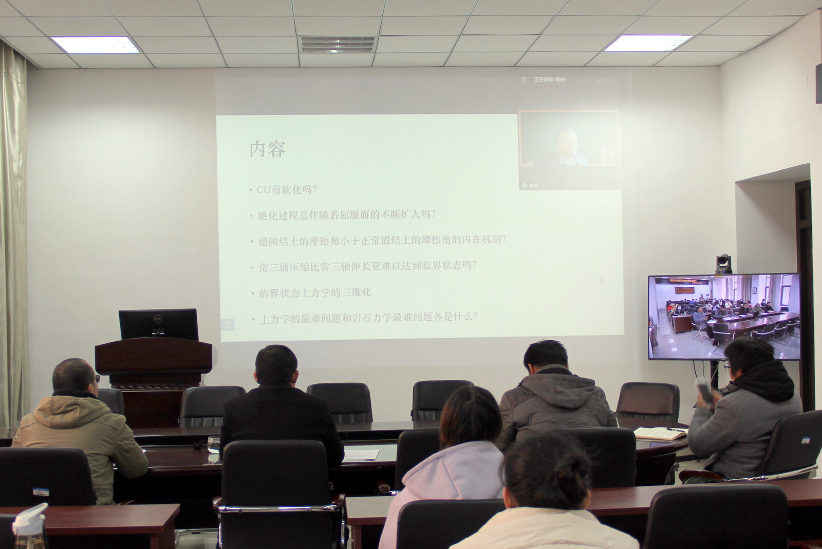 125日,应太阳成集团tyc151cc邀请,北京工业大学郑宏教授通过腾讯会议平台为我院师生作了题为“土力学研习的几个心得和疑惑”的学术报告。来自北京工业大学、中科院武汉岩土所、同济大学、东南大学、哈尔滨工业大学、天津大学、北京航空航天大学、中山大学、武汉大学、中南大学、山东大学、重庆大学、河海大学、上海大学、中国地质大学、西南交通大学、南京工业大学、贵州大学、湘潭大学、华东交通大学、湖南科技大学、三峡大学、湖北工业大学、华北水利水电大学、郑州航空工业管理学院和我校等单位的300多位同行专家、博士后、博士生、硕士生共同聆听了报告。建工学院院长周葆春,副院长肖琪聃,青年教师马文强、马全国、张金浩、梁维云和全体研究生参加了此次报告会,报告会由建工学院院长周葆春教授主持。
