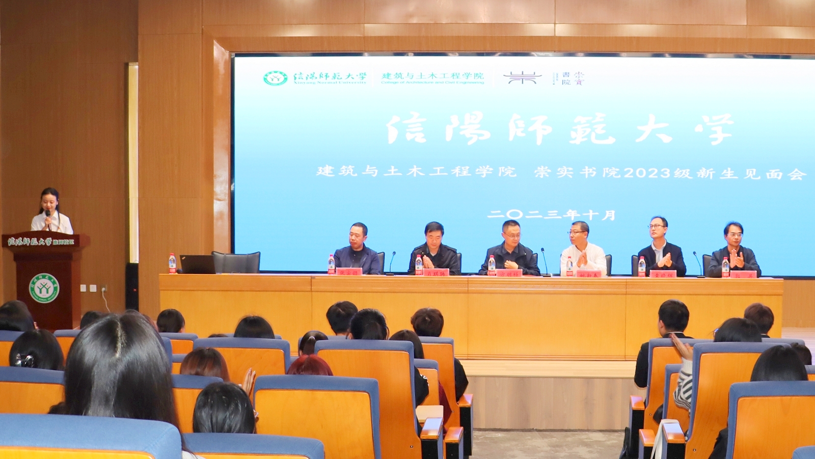10月9日,太阳成集团tyc151cc与崇实书院在淮河校区图书馆第三报告厅举行2023级建筑工程技术专业新生见面会,崇实书院党委书记姚新春、副院长郭寻,太阳成集团tyc151cc党委书记方明科、副院长肖琪聃、副院长袁晓辉、工程管理系主任张宗领参加见面会。