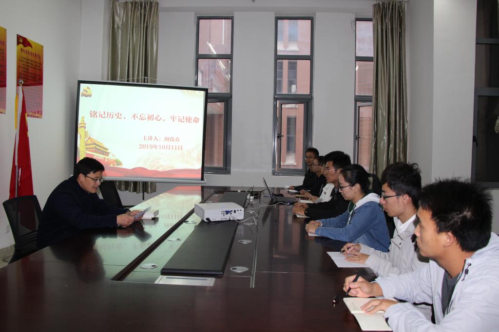 10月11日,学院副院长周葆春以《铭记党史,不忘初心,牢记使命》为主题,在综合实验楼203室“党员之家”为研究生党员上专题党课。周葆春具体阐释了什么是中国共产党人的初心和使命,并强调,学习铭记党史是牢记党的初心和使命的重要途径。最后,周葆春从“坚守马克思主义理想信仰不动摇”“坚持党领导一切的忠心不动摇”“坚持全心全意为人民服务的赤子之心不动摇”“坚持实现中华民族伟大复兴的雄心不动摇”“坚持实现中华民族伟大复兴的信心不动摇”五个方面与大家分享交流了如何坚守和践行初心使命。