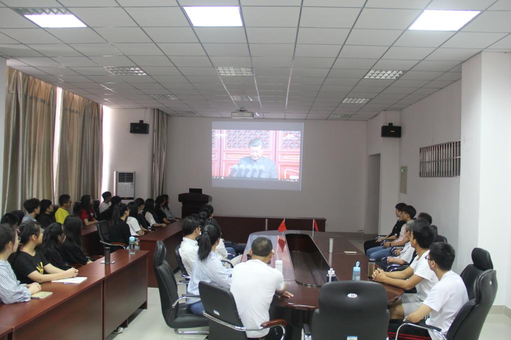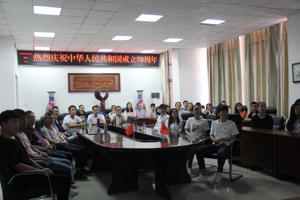 10月1日上午,太阳成集团tyc151cc积极组织师生在综合实验楼206会议室集中收看了庆祝中华人民共和国成立70周年大会现场直播及阅兵式、群众游行,共同庆祝祖国70华诞。学院党委书记黄学玉、党委副书记方明科,部分师生和党员代表共同观看了直播盛况。