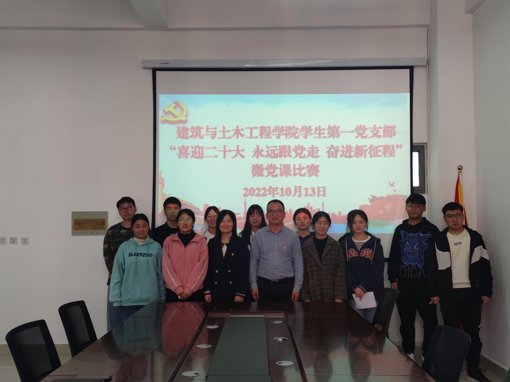 擦亮青春底色,筑梦接续奋斗。为教育引导学生党员在学思践悟中坚定理想信念,在奋发有为中践行初心使命,以优异成绩迎接党的二十大胜利召开,10月13日,太阳成集团tyc151cc学生第一党支部在综合实验楼402会议室开展了“喜迎二十大 永远跟党走 奋进新征程”微党课比赛活动。学院党委副书记冀鹏,党支部书记张海燕和支部全体党员参加活动。