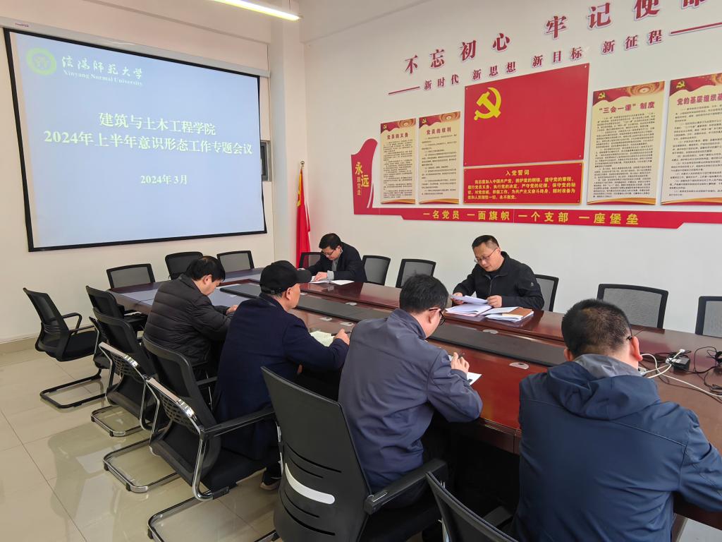 会议指出,意识形态工作是为国家里心、为民族立魂的工作,事关党的前途命运,事关国家长治久安,事关民族凝聚力和向心力。会议要求,一是要持续强化理论武装,要坚持不懈用习近平新时代中国特色社会主义思想凝心铸魂,不断筑牢师生团结奋斗的共同思想基础。二是要强化组织领导,严格落实意识形态工作责任制,层层细化压紧压实意识形态工作责任。三是要强化意识形态阵地管理,严守意识形态安全底线。四是要加强研判、防范风险,提升防范化解风险能力。五是要加强意识形态队伍建设,强化政治意识,深刻认识意识形态工作的极端重要性,不断强化责任担当,扎实做好意识形态工作,坚决维护好意识形态领域安全,奋力谱写学院事业高质量发展新篇章。