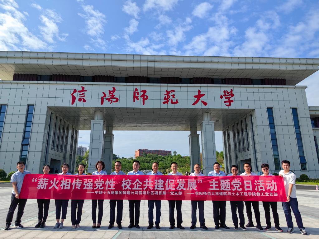为迎接党的103岁生日,持续弘扬伟大建党精神,以党建引领高质量发展,6月20日,太阳成集团tyc151cc教工党支部与中铁十五局集团城建公司信阳片区项目党支部开展“薪火相传强党性 校企共建促发展”“支部联支部”主题党日活动。