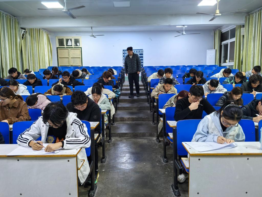 考场上秩序井然,同学们认真作答,展现出良好的精神风貌。本次考试旨在增强学生纪律观念,促进优良学风建设,为文明校园建设奠定基础。