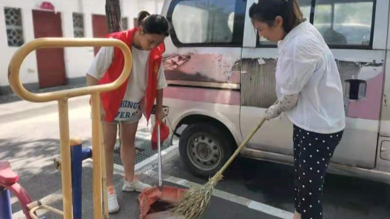 7月24号,在社区党组织的带领下,秦一博同学积极参加了焦作市中站区衡苑社区的 “小红李”志愿服务队。她们一起将社区内的各个小区的地面进行清扫,将雨水冲毁建筑物中的垃圾清理出来,并对小区的楼道、院落等地区进行了消毒工作。(20级道路桥梁与渡河工程班 秦一博)