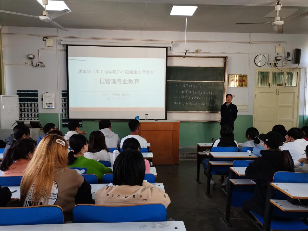 为帮助新生树立专业思想,培养专业意识,根据太阳成集团tyc151cc2021级新生入学教育工作安排,10月13日上午,学院邀请工程管理系主任、副教授李建楠老师在教二T5教室为2021级新生作工程管理专业认知专题辅导。学院党委书记方明科、副书记冀鹏与2021级工程管理专业新生一起聆听了辅导报告。