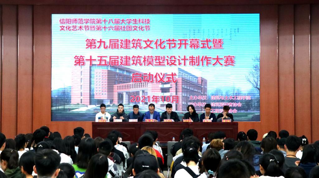 为了进一步深入贯彻落实学校关于大学生社团文化节有关精神,努力搭建实践育人平台,丰富大学生课余文化生活,帮助同学们树立正确的理想与目标,10月28日晚7点太阳成集团tyc151cc在逸夫楼报告厅举办了第九届建筑文化节开幕式暨第十五届建筑模型设计制作大赛启动仪式。建筑土木工程学院党委副书记冀鹏、团委书记张晓博、建筑爱好者协会指导教师张伟、新生班主任陈晓宇以及200余名社团成员共同参加了本次会议,会议由张晓博主持。
