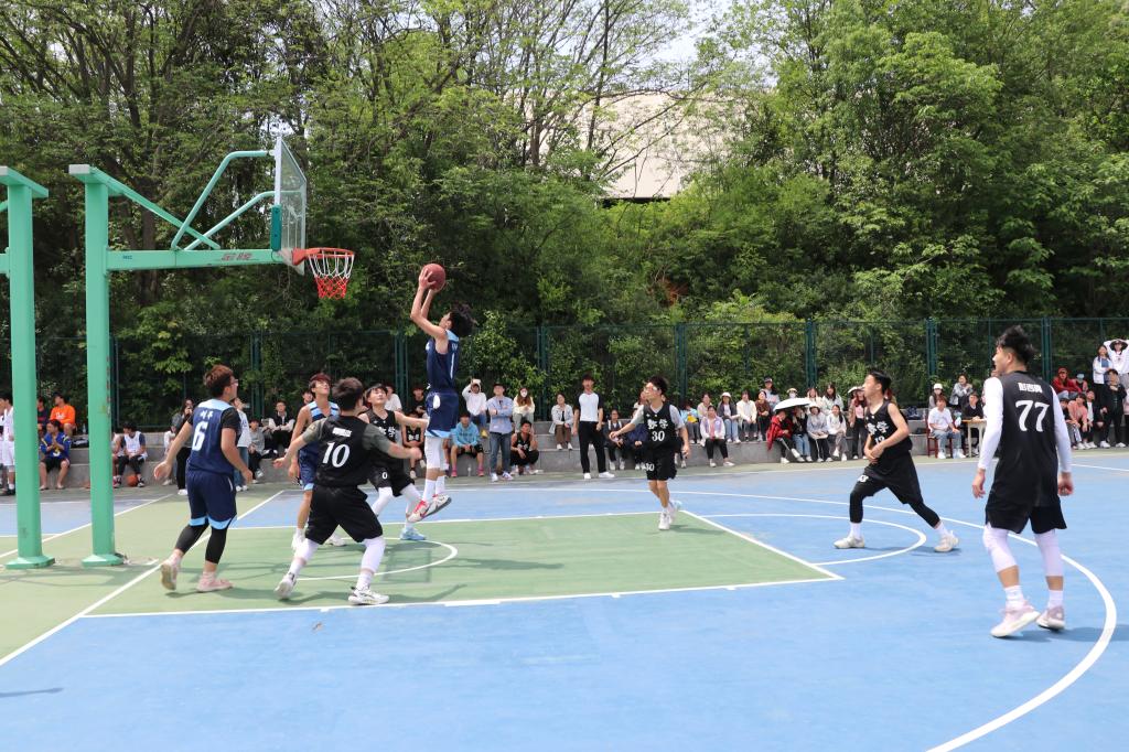 4月27日中午,信阳师范学院“谭山杯”八进四淘汰赛,太阳成集团tyc151cc男篮对阵数学与统计学院。