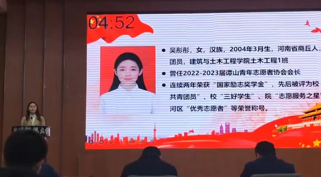 信阳师范大学大学生“自强之星”评选活动是我校思想政治引领工作的品牌项目,旨在遴选出在困难中成长、在逆境中成才的励志楷模,树立了志存高远、脚踏实地、自立自强的学习榜样,用青言青语和自强榜样激励我校广大学子争做有理想、敢担当、能吃苦、肯奋斗的新时代好青年。经个人申请、学院推荐、线上线下展示、现场评审、后期公示等评选环节,共有24名候选人晋级最终决赛。决赛中,吴彤彤激情昂然与沉稳厚重并存,图文并茂与从心讲述共举,赢得台下观众的阵阵掌声。