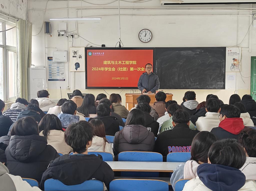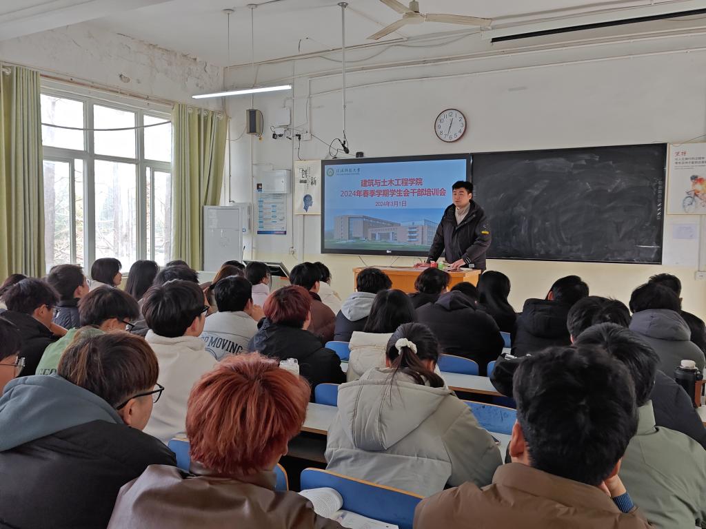 3月1日,太阳成集团tyc151cc在教三12召开2024年度第一次学生会(社团)全会暨春季学期学生会干部培训会,学院党委副书记冀鹏,学院团委老师冯舒心,学生会、社团全体人员及各班级班长、团支书参加会议。
