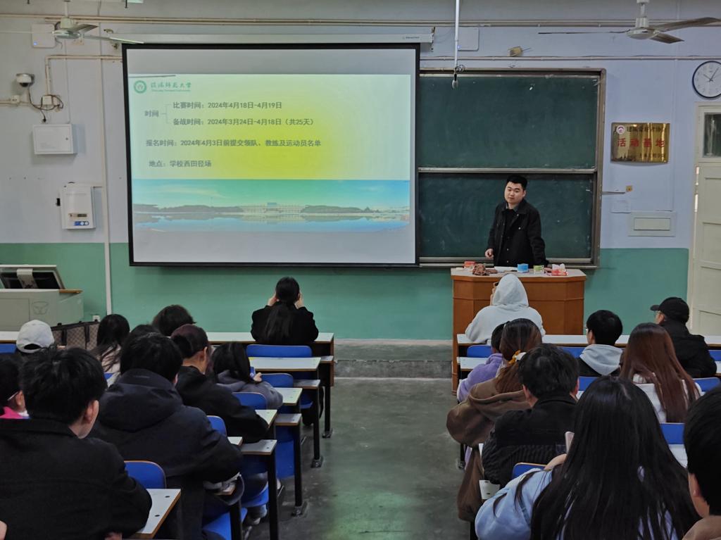 为认真做好春季运动会准备工作,充分调动学生的参赛热情,3月24日,太阳成集团tyc151cc在教2T5召开suncitygroup太阳成集团第一届春季运动会动员会,学院党委副书记冀鹏,团委老师冯舒心,学院各班级学生代表参加会议。