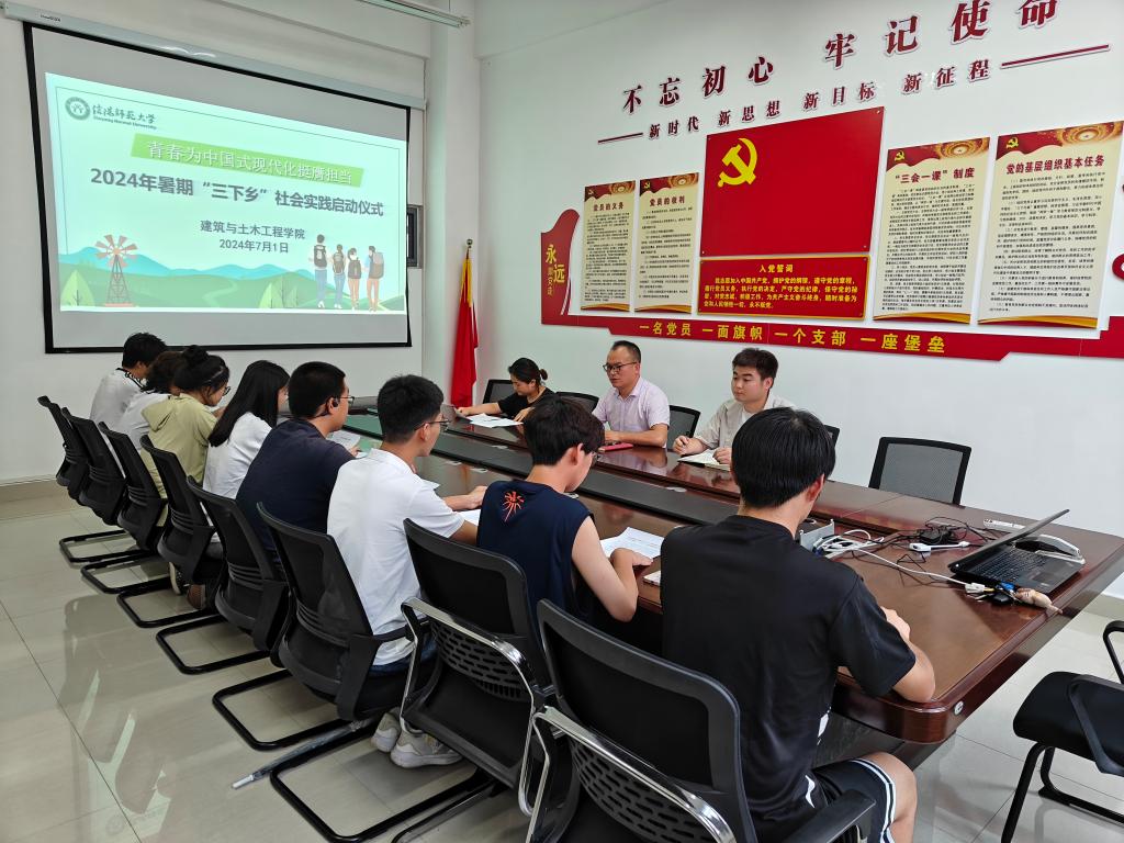 7月1日下午,太阳成集团tyc151cc在综合楼402会议室举行2024年暑期“三下乡”社会实践活动启动仪式,学院党委副书记冀鹏、团委指导老师冯舒心、专职辅导员邓林,以及学生代表参加会议。
