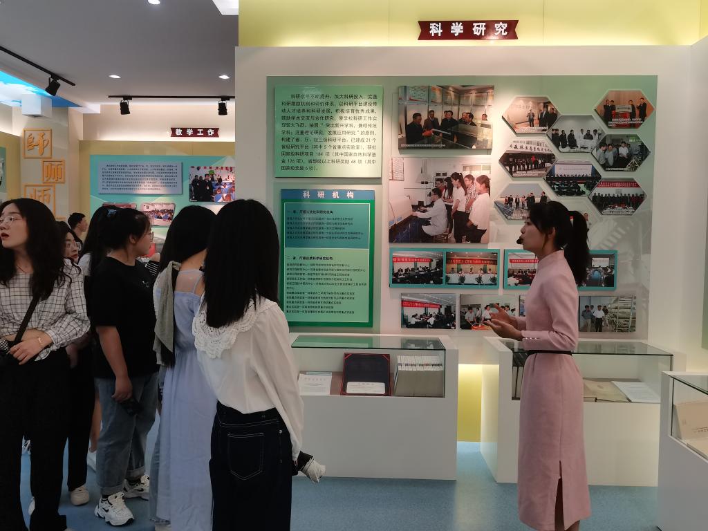 在讲解员的带领下,参观从刻有“教师之摇篮”的巨型浮雕前开始。讲解员结合文史资料和照片,生动讲解了学校建校以来,特别是近四十年来的发展历程、办学理念和办学成果。在一座座奖杯,一张张证书面前,同学们更加深刻得了解到学校在科学研究、精神文明建设等方面取得的成果。校友风采的展示激励着同学们向先进学习,扬帆万里,勇攀高峰,争做勇担当,敢作为的社会主义新青年。最后,参观在悠扬的琴音和优雅的茶艺表演中结束。