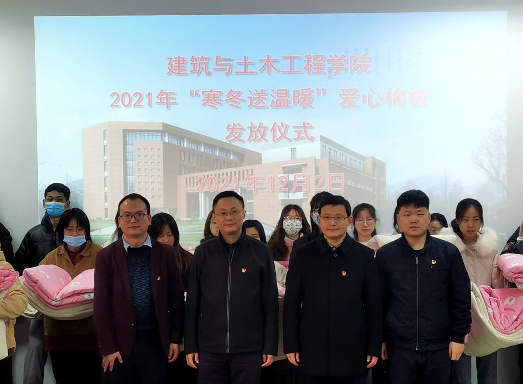 活动中,方明科宣读了《太阳成集团tyc151cc2021年“寒冬送温暖”爱心棉被资助学生名单》,方明科、周葆春为受资助学生现场发放了爱心棉被。