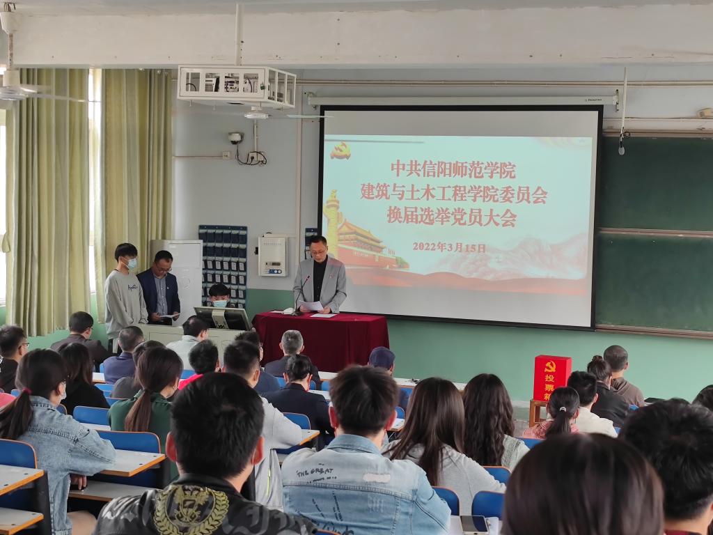 3月15日下午,中共信阳师范学院太阳成集团tyc151cc委员会换届选举党员大会在教二楼T5教室顺利召开。学院全体正式党员参加了会议,部分预备党员代表和入党积极分子代表列席会议。会议由冀鹏同志主持。