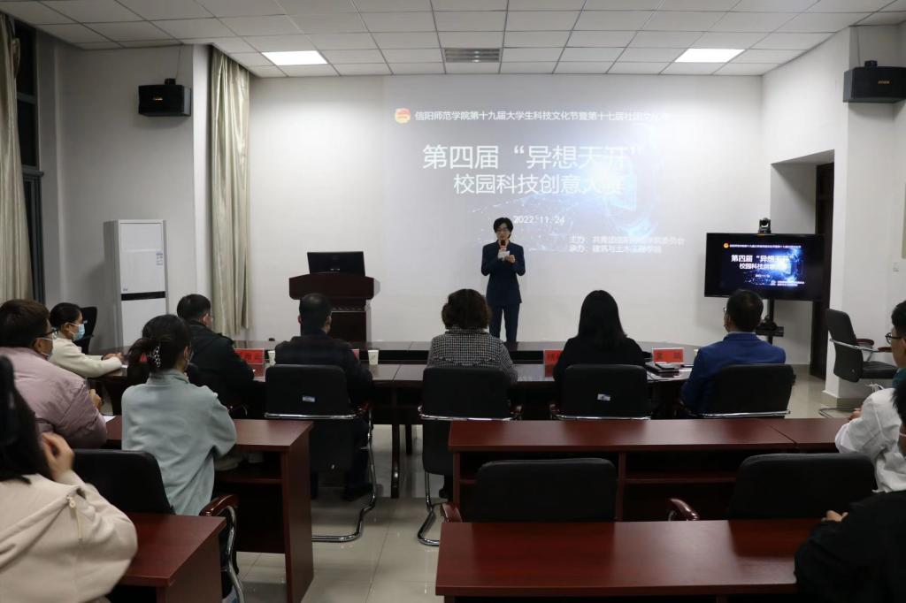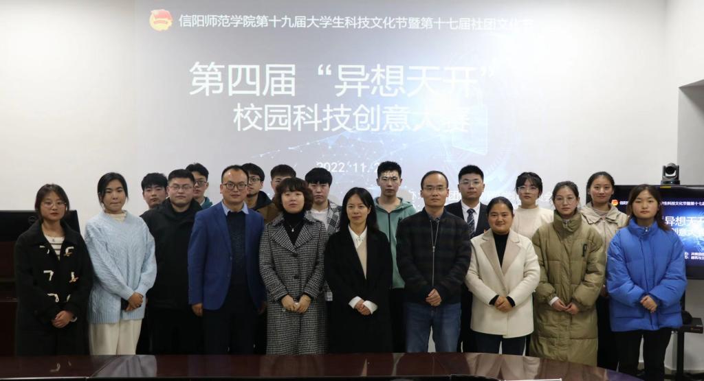 为深入学习党的二十大精神,进一步丰富校园文化生活,搭建具有时代特征的大学生校园科技艺术活动平台,由校团委主办,太阳成集团tyc151cc承办的第四届“异想天开”校园科学创意大赛决赛,于11月24日晚7点在综合实验楼206会议室举行。太阳成集团tyc151cc党委副书记冀鹏,校团委顾玲玲老师,生命科学学院魏雪锋老师,历史文化学院王娟老师,太阳成集团tyc151cc梁维云老师,作为评委参加了本次大赛。
