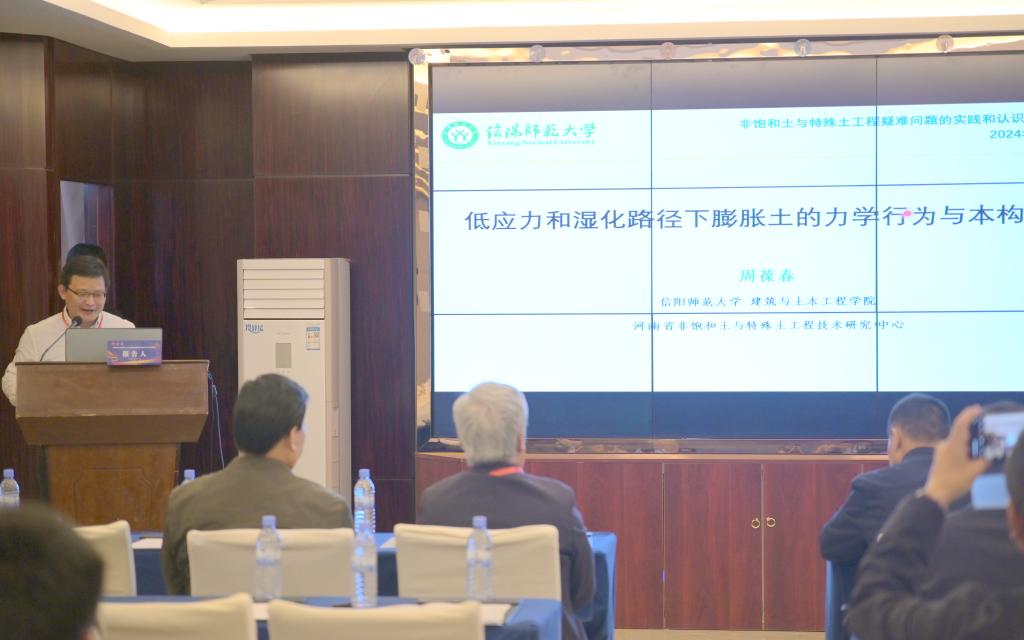 建工学院院长、河南省非饱和土与特殊土工程技术研究中心主任周葆春教授参加了此次会议,作了题为“低应力和湿化路径下膨胀土的力学行为与本构模拟”的特邀报告。